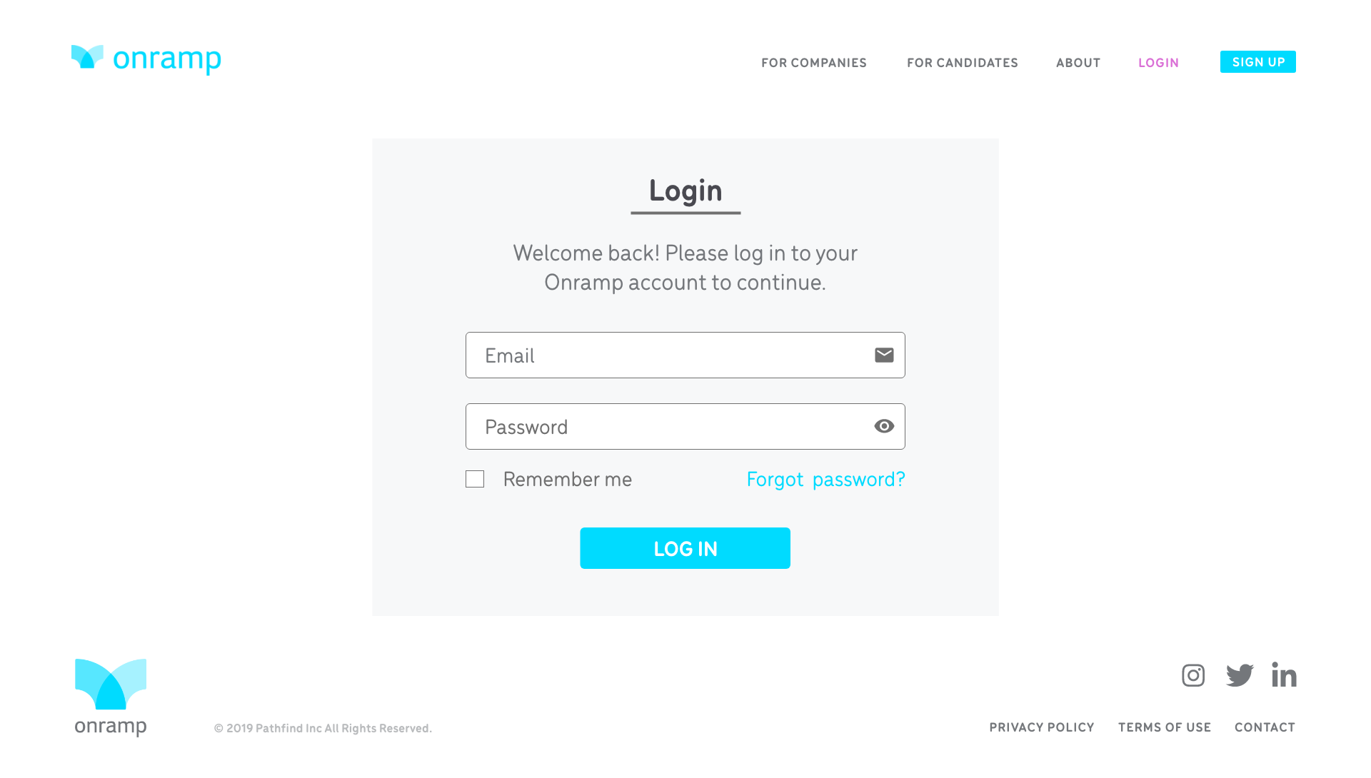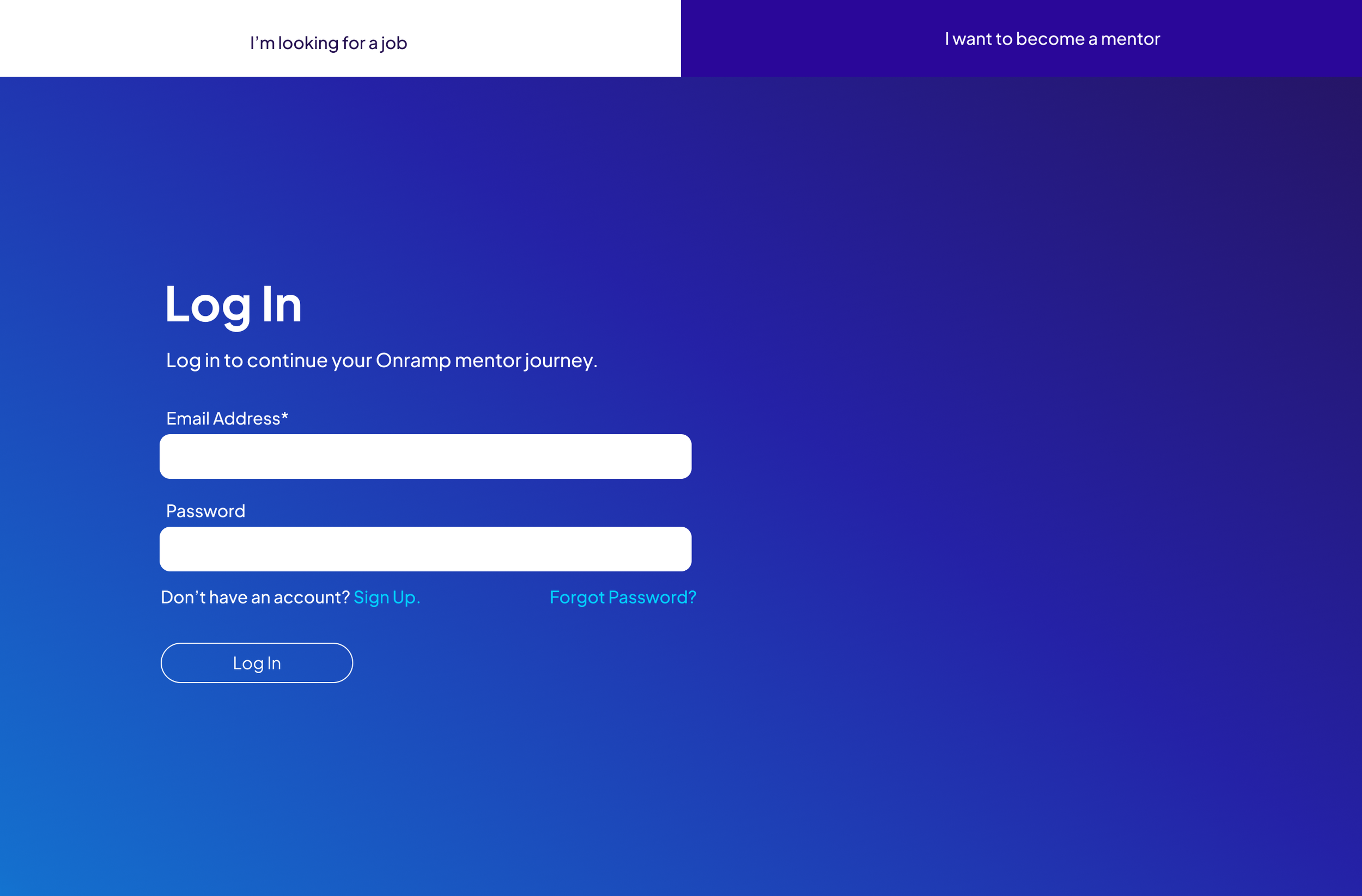 The previous designs were very successful, with Onramp netting over 50k candidate signups. This sleek redesign focused on recruiting new business partners to the Onramp Mentor Program.