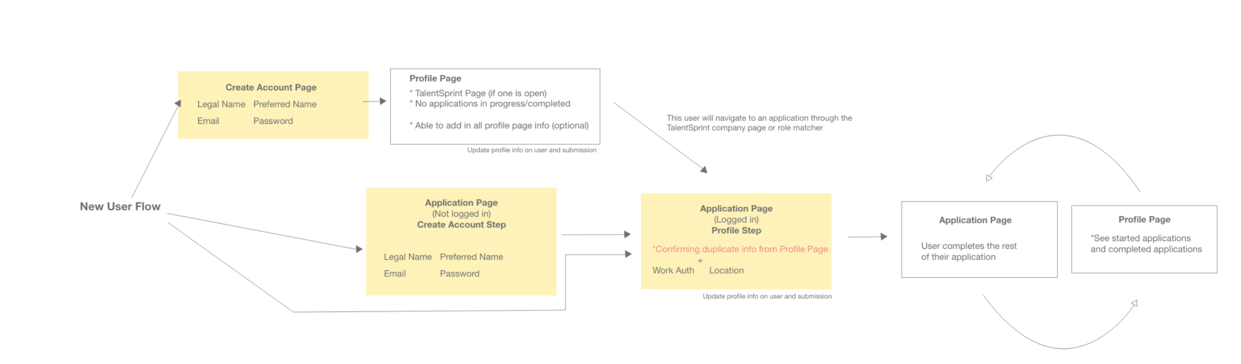 An updated site flow allowing users to customize their profile and keep track of their applications